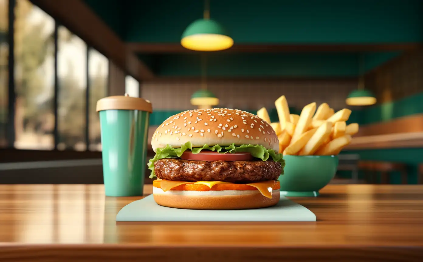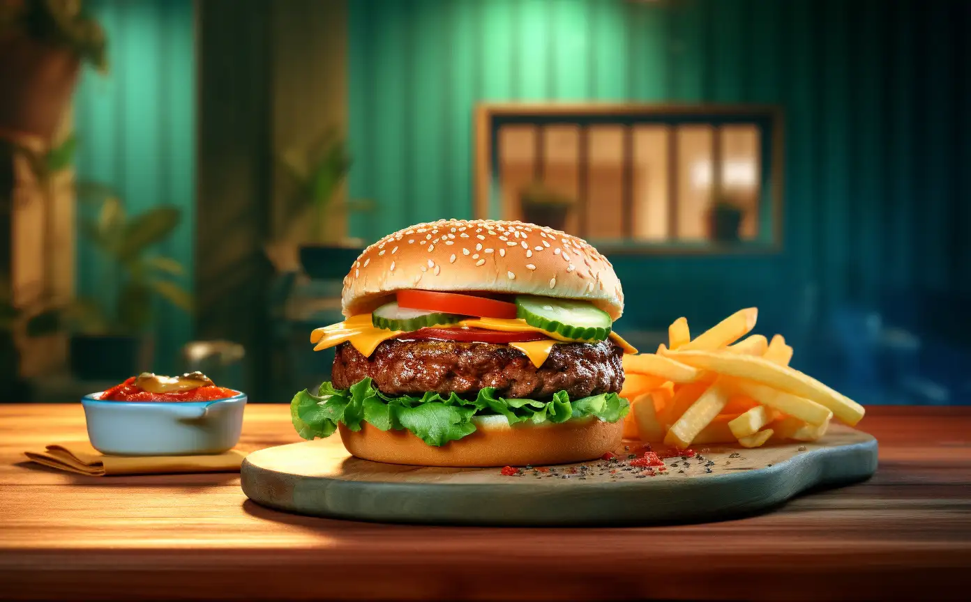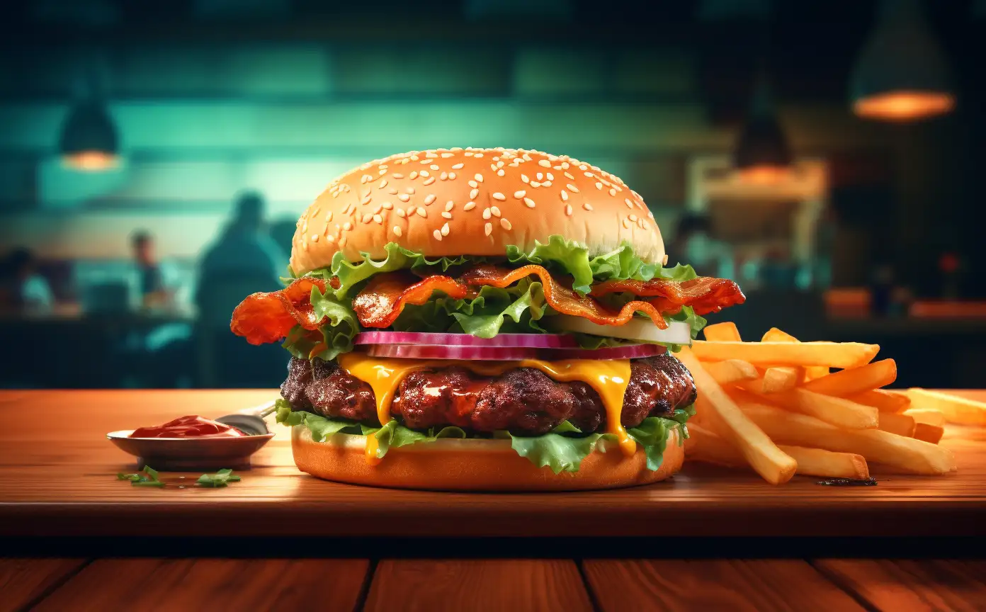 Indulge in smoky BBQ flavors and crispy bacon. Juicy beef patty, Swiss cheese, tangy BBQ sauce, fresh lettuce, all between toasted buns. Flavor explosion!